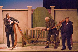 In Tom Stoppard’s funnny and poignant translation of Gérald Sibleyras’s Les Vents des Peupliers (The Wind in the Poplars), we meet three veterans from the First World War who pass their monotony-filled days in a hospital by engaging in verbal battles of long-forgotten military campaigns, grumblings about the matron, and reflections on their life. Henri is afflicted by a gammy leg, Gustave suffers from agoraphobia, and Philippe passes out because of a piece of shrapnel lodged in his brain.